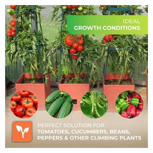 De ideale plantentoren voor het kweken van onder andere tomaten. Voorzien van een waterreservoir en een klimhulp in vier niveaus die individueel monteerbaar zijn.